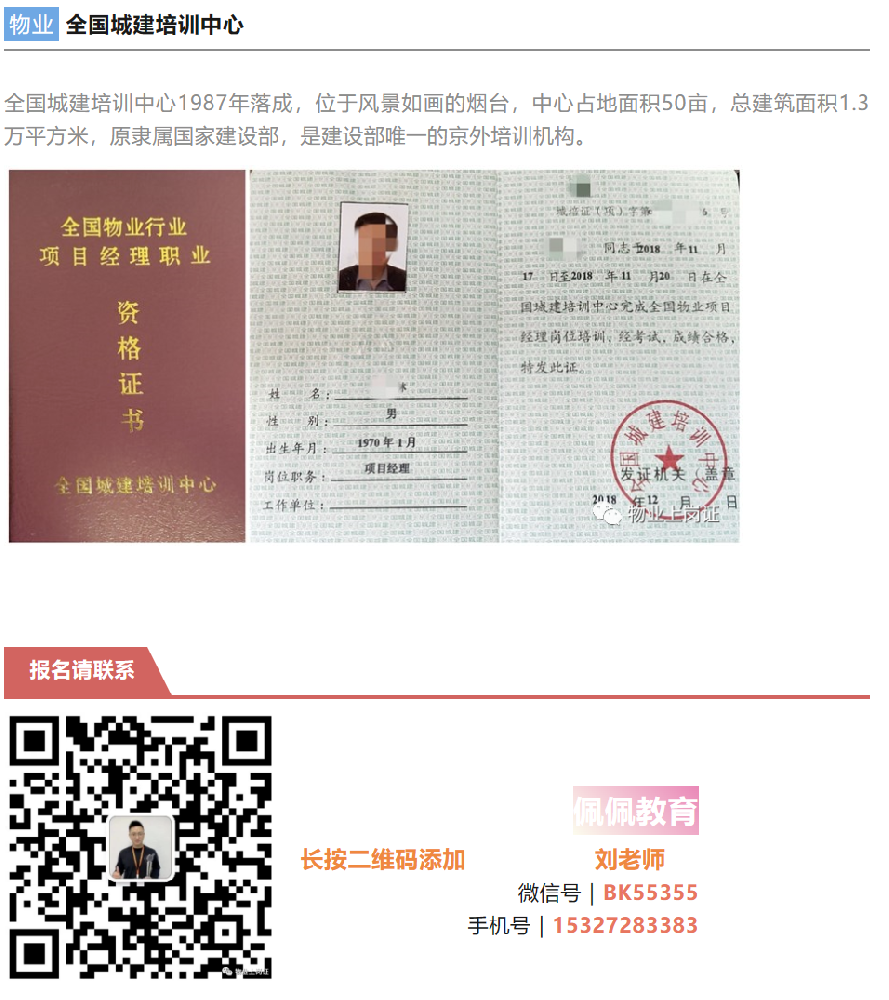2.权威性高。全国城建中心是我国城建领域内的权威机构之一,其颁发的物业项目经理证书具有权威性和公信力,得到社会公众和行业内从业人员的广泛认可,并且是物业服务企业职业资格认定的必备资格条件。